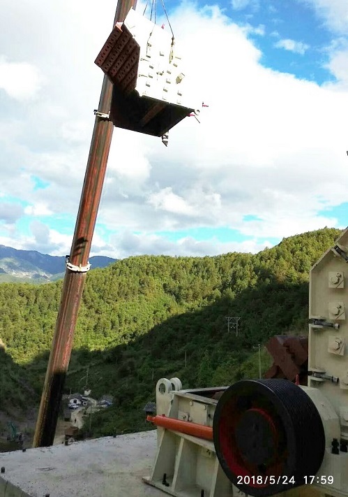 上圖所示為傈僳族碎石生產(chǎn)線吊裝現(xiàn)場,130噸大型吊車加20噸配重加挖掘機(jī)壓背才吊上去。